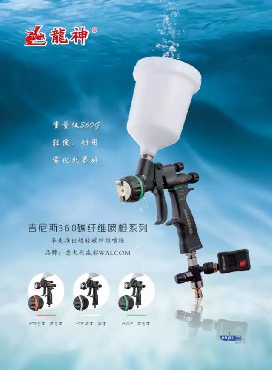 吉尼斯360碳纖維噴槍系列 2017-10-17 20315 經過多年的研究、調查、噴涂和阻力測試,龍神攜手意大利威彩進行噴涂世界的革新,使用最輕的高性能材料--碳纖維,給市場帶來了最輕的、最高性能的和最具有創新的噴槍。