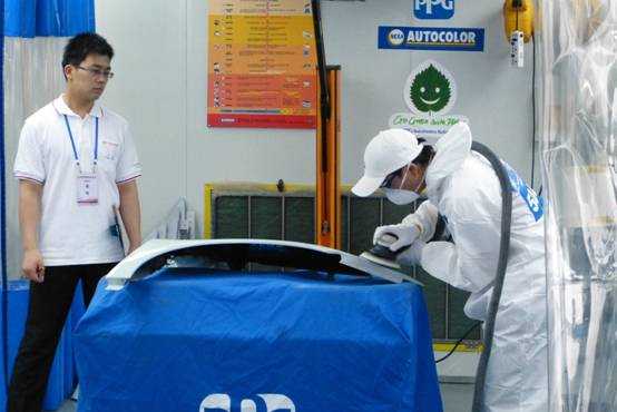 國賽展位龍神現(xiàn)場演示保險(xiǎn)杠修復(fù)