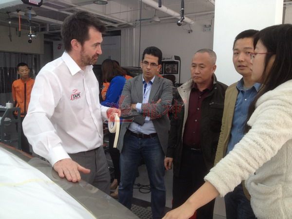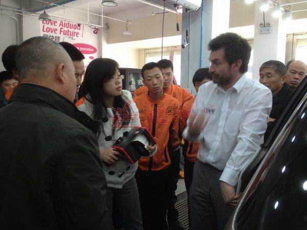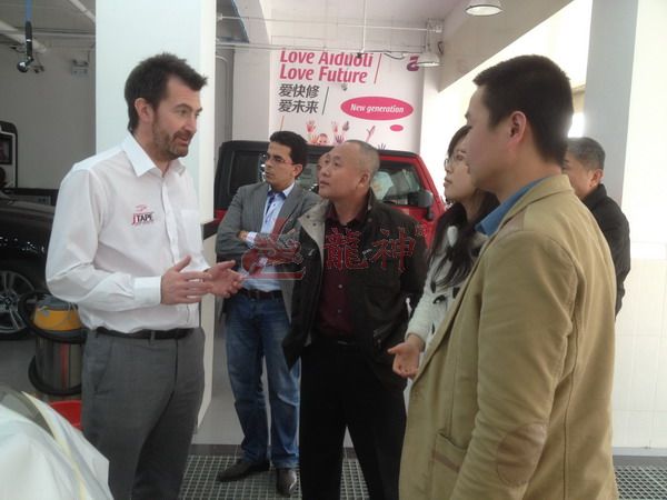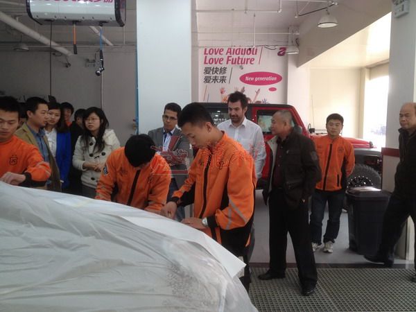 2013年特邀國外專家赴北京車爵士演示車縫泡膠條的使用 本司訊:2013年4月北京晴空萬里,龍神公司特邀英國專家一行五人,來到了北京車爵士進行汽車噴涂遮蔽技術交流。首先公司一行了解車爵士的汽車噴涂情況及詢問了使用的遮蔽工具情況。隨后英國專家針對在汽車噴漆時難噴涂的車門縫隙、玻璃死角等地方的專業遮蔽工具的演示。車縫泡沫膠:用于車身所有縫隙的遮蔽,有效隔離及遮蔽漆霧噴入車縫里。 2013-04-08 12016