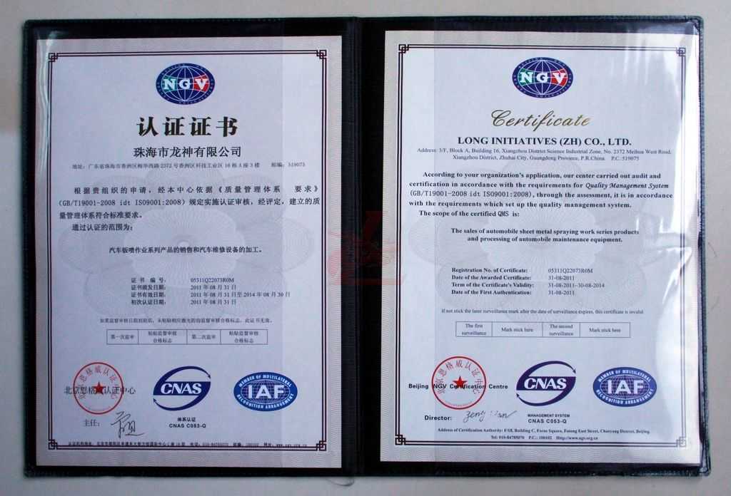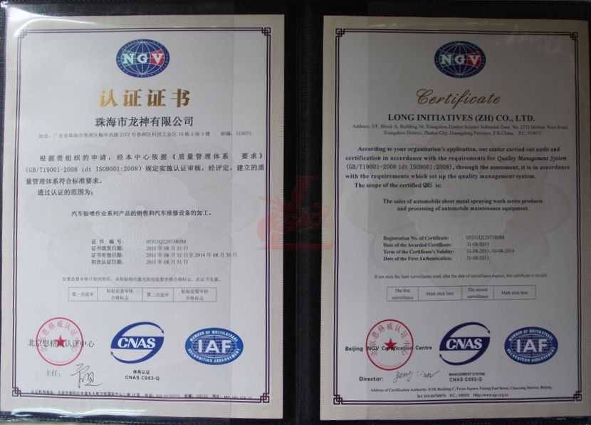我司通過ISO9001:2008質量管理體系認證 2011年8月31日,我司通過“ISO9001:2008質量管理體系認證”并獲得認證證書! 公司各部門認真學習和貫徹執行“ISO9001:2008國際質量標準管理體系”的各項標準,并接受了第三方機構“北京恩格威認證中心”的嚴格審核,獲得認證證書。 這標志著我司在質量管理上又上了一個新的臺階,打造更高質量的汽車鈑金噴漆系列產品。 證書封面 ISO9001:2008質量管理體系認證證書 橫幅 2011-09-08 10685