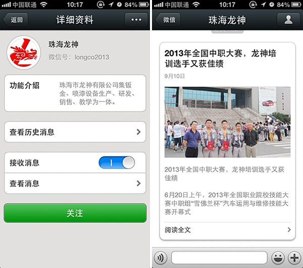 珠海龍神官方微信敬請關注! 珠海市龍神有限公司公共微信號已申請成功,請大家多多關注! 掃描二維碼,也可直接搜索公眾微信號“珠海龍神” 我們將不定期發布公司最新資訊。 您也可以發消息和我們進行互動。 查看歷史消息收看您錯過的動態新聞,讓您第一手掌握最新動態。 2013-09-18 16496